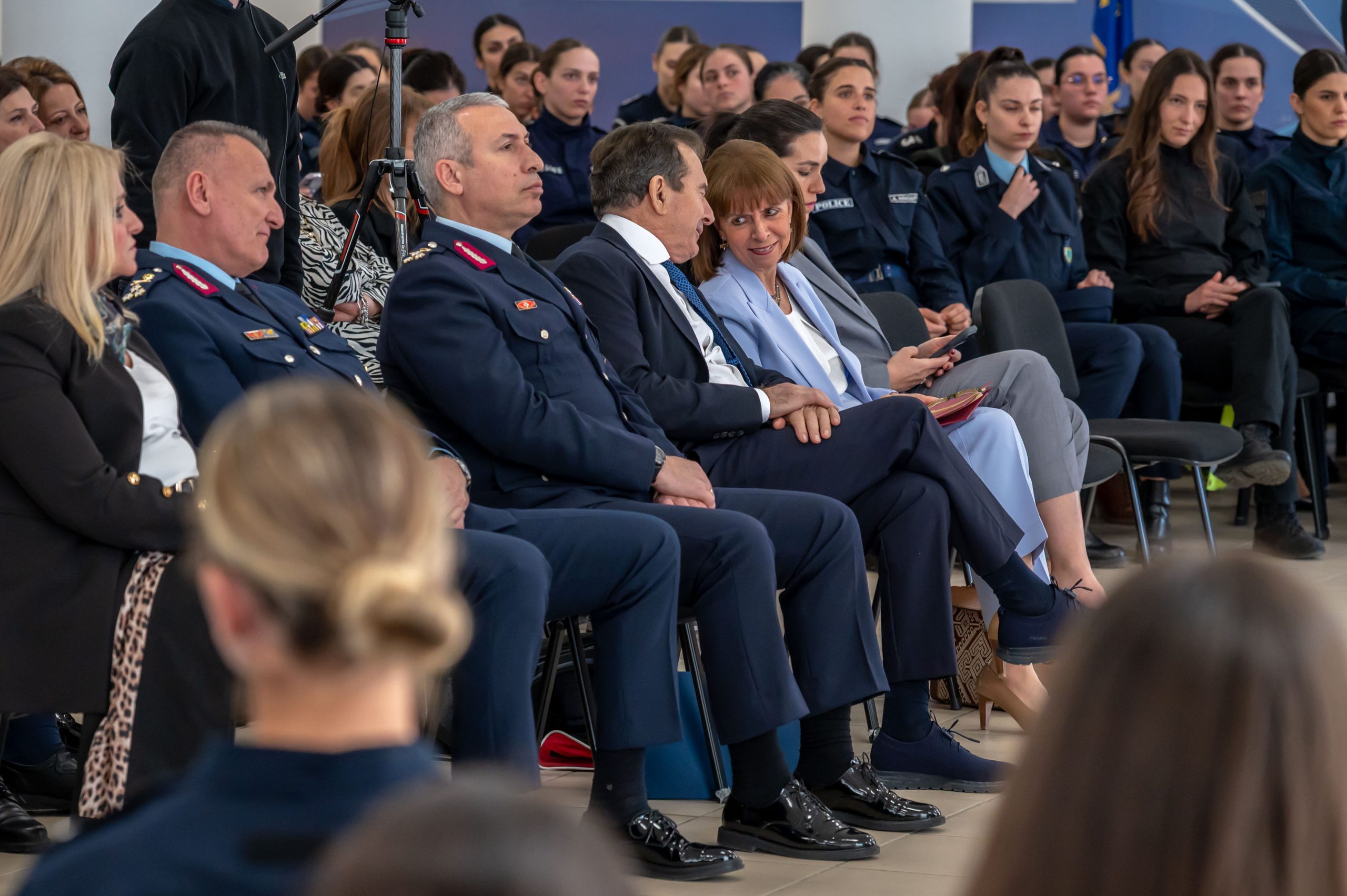 Την εκδήλωση τίμησε με την παρουσία της η τέως Πρόεδρος της Δημοκρατίας και Πρόεδρος του Συμβουλίου της Επικρατείας ε.τ., Κατερίνα Σακελλαροπούλου, η οποία κήρυξε την έναρξη της εκδήλωσης στην ενότητα «Ιστορίες που εμπνέουν». Με την εμπειρία της προσπάθησε να εμπνεύσει τις νέες γυναίκες της Αστυνομίας να πετυχαίνουν τους στόχους τους. Η ίδια αναφέρθηκε στα δικά της γυναικεία πρότυπα που τη διαμόρφωσαν. Στη μητέρα της, τις γιαγιάδες της, αλλά και στη Ρουθ Μπέιντερ Γκίνσμπεργκ (Ruth Bader Ginsburg) το πρώην Μέλος του Ανώτατου Δικαστηρίου των Ηνωμένων Πολιτειών που αποτέλεσε ξεχωριστή μορφή παγκοσμίως στον χώρο της δικαιοσύνης. Στην ομιλία της, μεταξύ άλλων, ανέφερε: «Υπήρξα η πρώτη γυναίκα Πρόεδρος του Συμβουλίου της Επικρατείας και η πρώτη γυναίκα ΠτΔ. Όταν ο Πρωθυπουργός ανακοίνωσε την πρότασή του, δήλωσα ότι στο πρόσωπό μου τιμάται η σύγχρονη Ελληνίδα. Κάτι που στη συνέχεια αντιλήφθηκα πολύ έντονα μέσα από την επαφή μου με τις γυναίκες στα ταξίδια μου, ιδιαίτερα στην επαρχία. Στα πρόσωπα νέων κοριτσιών και γυναικών έβλεπα θαυμασμό, εκτίμηση, αλλά και ελπίδα, όνειρο. Έλεγα πάντα ότι ευχή μου είναι τα κορίτσια να μπορούν να φτάνουν όπου ονειρεύονται. Αυτό που με συγκίνησε, όμως, βαθιά ήταν οι γυναίκες μεγαλύτερης ηλικίας. Οι μανάδες της δικής μου γενιάς ήταν εκείνες που άρχισαν να εργάζονται και να διεκδικούν ισότιμο ρόλο· οι αμέσως προηγούμενες είχαν προσφέρει πάρα πολλά, σε παραδοσιακούς ρόλους. Γυναίκες μου έλεγαν, συγκινημένες: «Κορίτσι μου, σε καμαρώνουμε στην τηλεόραση». Έβλεπαν ότι «μία από εμάς» έφτασε εκεί. Κι εγώ αισθανόμουν ότι ασκούσα τα καθήκοντά μου για όλες, όσες προηγήθηκαν και όσες θα ακολουθούσαν».