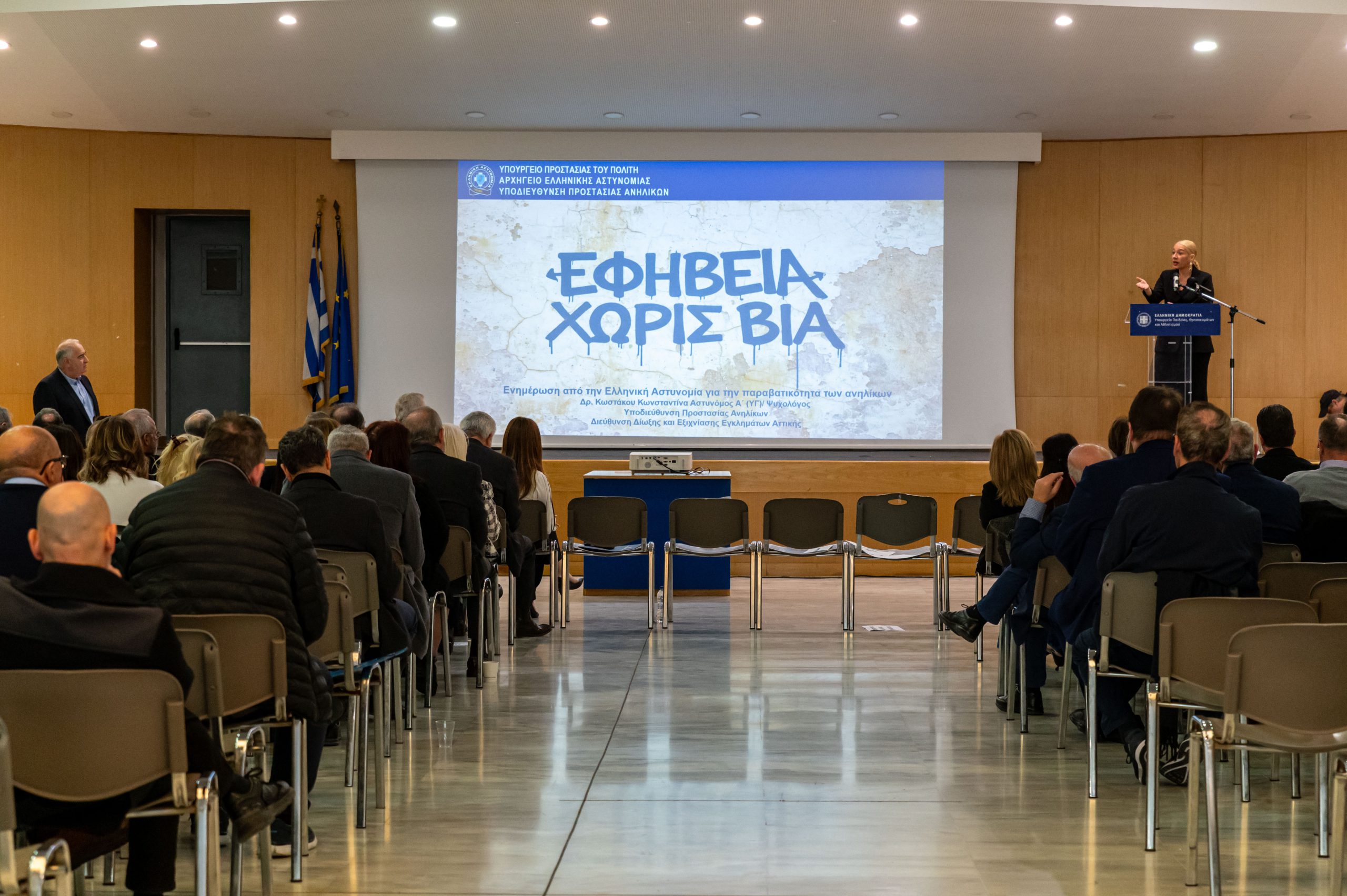 Από εκεί και πέρα, επειδή όταν είσαι πολιτικός, όταν ασκείς διακυβέρνηση πρέπει πάντα να σκέφτεσαι να βλέπεις μπροστά και πρέπει πάντα να προσαρμόζεσαι στις νέες συνθήκες, γιατί αυτός που δεν προσαρμόζεται, μένει πολύ πίσω και μετά τα κρίνει τα προβλήματα, όπως συνηθίζουμε πολλές φορές να κάνουμε στην Χώρα μας. Ή, λοιπόν, εμείς προσπαθούμε να πάμε ταυτόχρονα με το πρόβλημα ή ένα βήμα μπροστά. Ιδρύσαμε πριν από λίγους μήνες μια νέα δομή στο Αρχηγείο της Ελληνικής Αστυνομίας, τη Διεύθυνση Κοινωνικής Αστυνόμευσης που είναι παρούσα η επικεφαλής της. Η Αστυνομική Διευθύντρια κυρία Πατρωνούδη. Ιδρύσαμε επίσης μια νέα Υπηρεσία, η οποία πάει λίγο πιο βαθιά ακόμα στα ζητήματα διερεύνησης των οργανωμένων κυκλωμάτων, των οργανωμένων δικτύων που προάγουν και παράγουν τη βία στους ανηλίκους και ταυτόχρονα παράγουν και προάγουν τη βία σε χώρους όπως ο αθλητισμός, στα ναρκωτικά και μια σειρά άλλες παράνομες συμπεριφορές. Αυτή η Υπηρεσία είναι η Διεύθυνση Αντιμετώπισης του Οργανωμένου Εγκλήματος στην οποία ο επικεφαλής είναι ο κ. Ντουίτσης, παρών σήμερα εδώ.